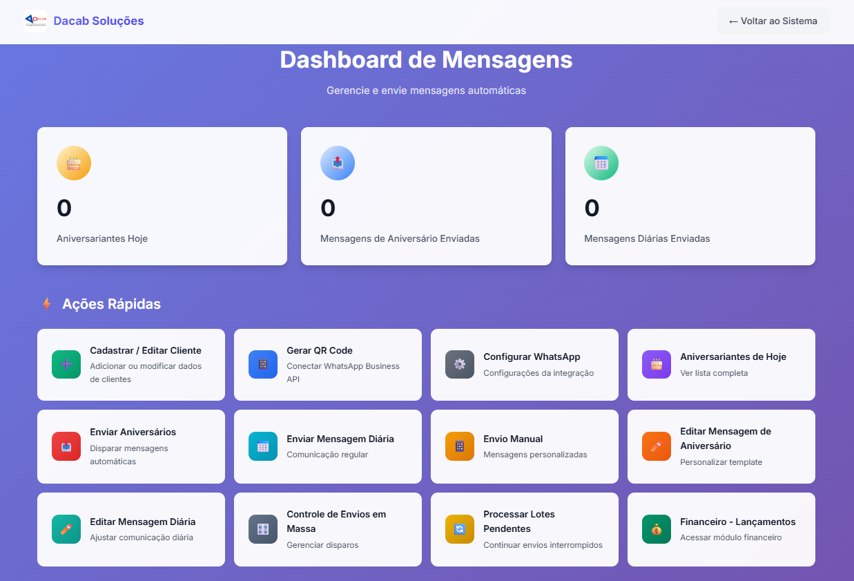 • Aniversariantes: mensagens automáticas de parabéns personalizadas
